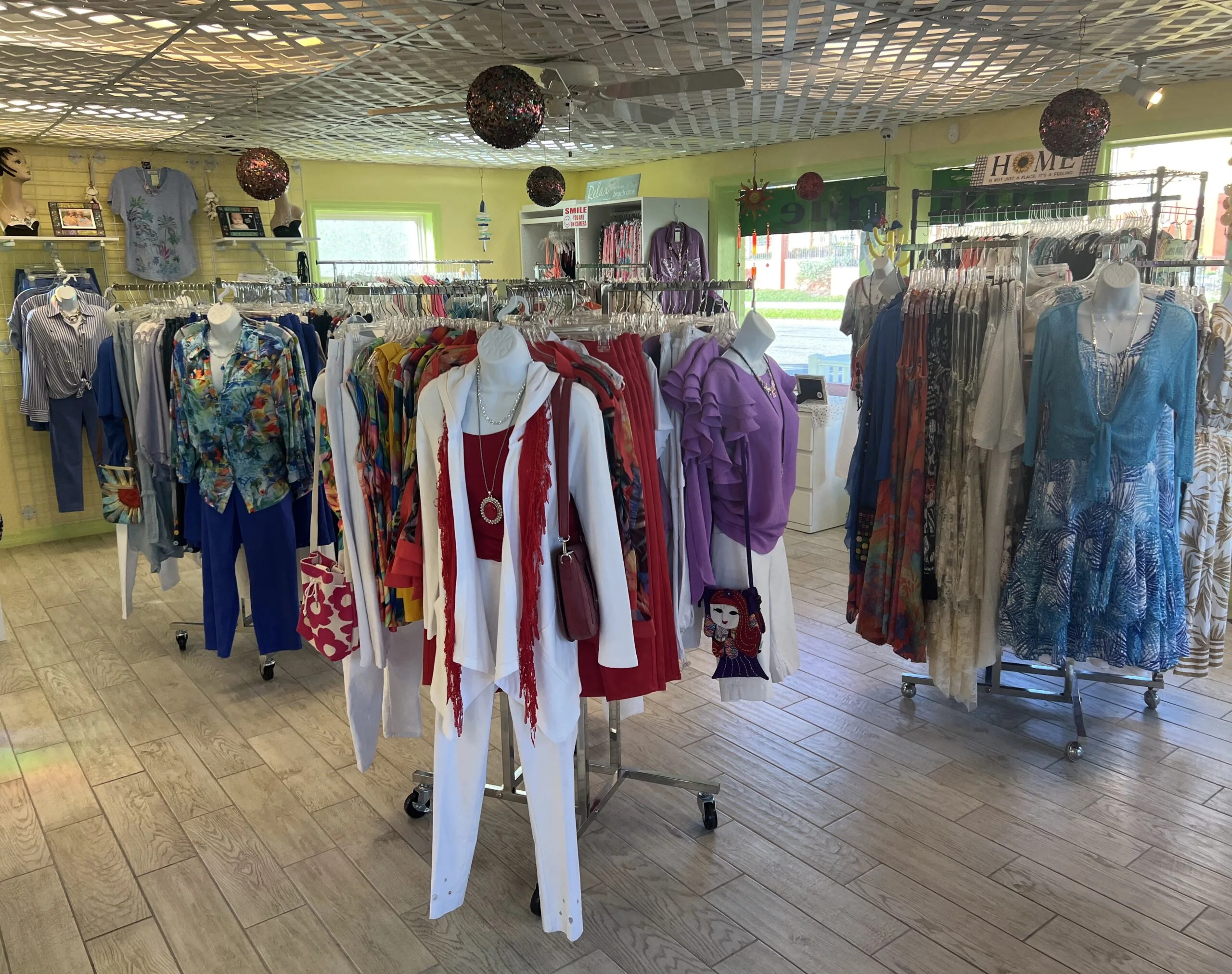 The boutique is open every day from 9:00 AM to 2:30 PM in North Redington Beach, Florida. For questions about sizing, new arrivals, or what is in stock, call (727) 391-0453.